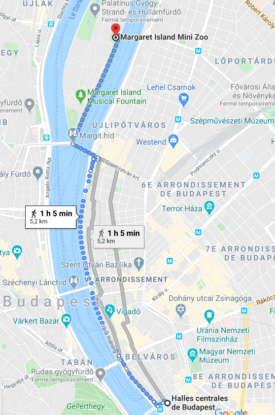 Puis 15h15 on a encore du temps, on décide d’à partir des halles, du pont Elisabeth, de remonter le danube jusqu’à l’ile Marguerite soit 5.2 km, 1h10