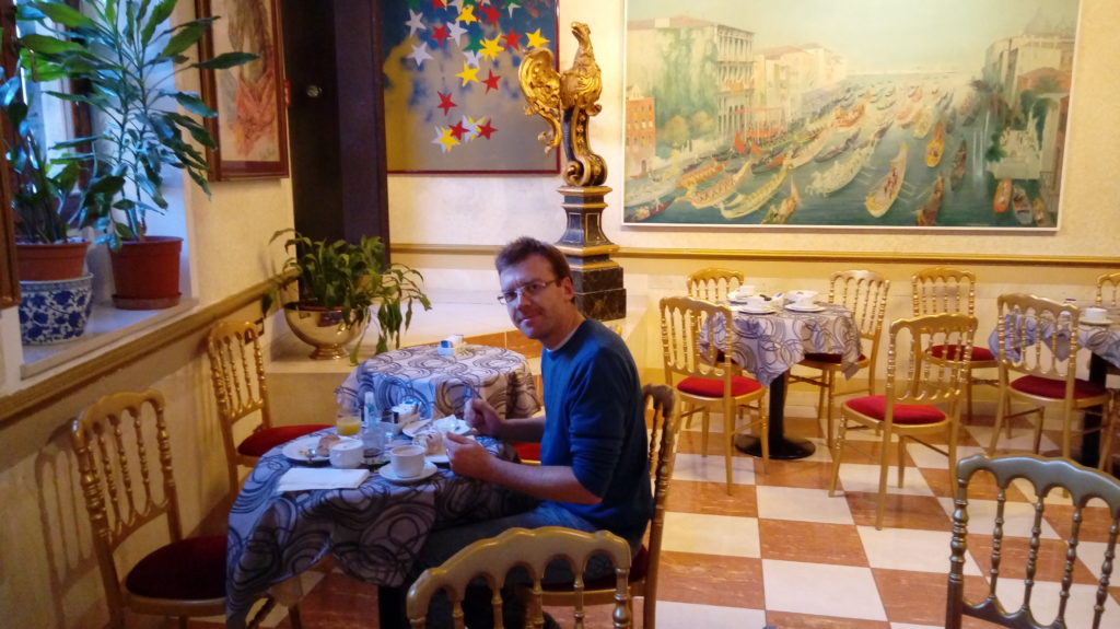 premier réveil à venise, il est 8h45, on s’est accordé quelques heures de dodo, ouiiii trop bien un petit dej en italie,
