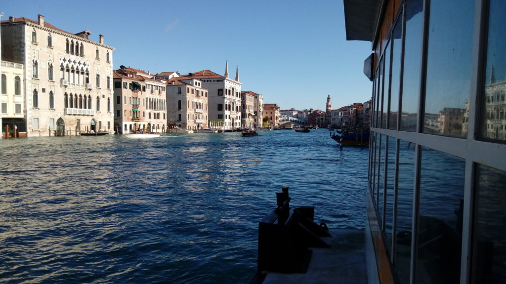 Direction le quartier ca d’oro en face du marché du Rialto, du coup on décide de prendre le vaporetto, de plus il fait beau pour faire une ballade sur le grand canal et passer sous le ponte di rialto (que l’on voit depuis notre arrêt )