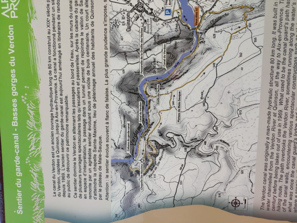 Ce sentier de randonnée longe le Verdon et suit l’ancien canal avant de rejoindre le plateau de Mallesauque et sa Chapelle Sainte Maxime.