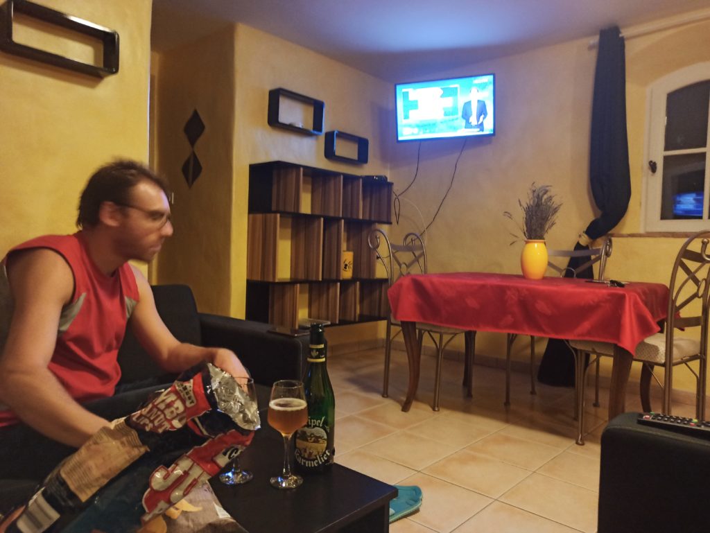 En sortant du spa on est allé commander nos deux pizzas pour revenir les chercher pour 20h30 cela nous laisse 1h/1h30 pour la douche et prendre l’apero