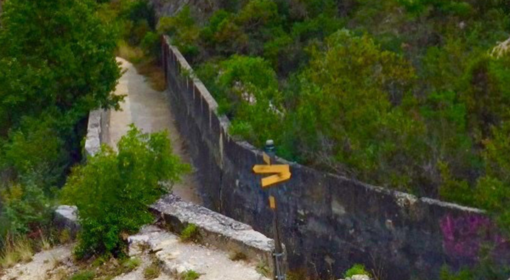 On repasse le pont en direction de Montmeyan en partant du parking pour prendre le depart de la randonnée qui se situe à quelques dizaines de mètres sur la droite.