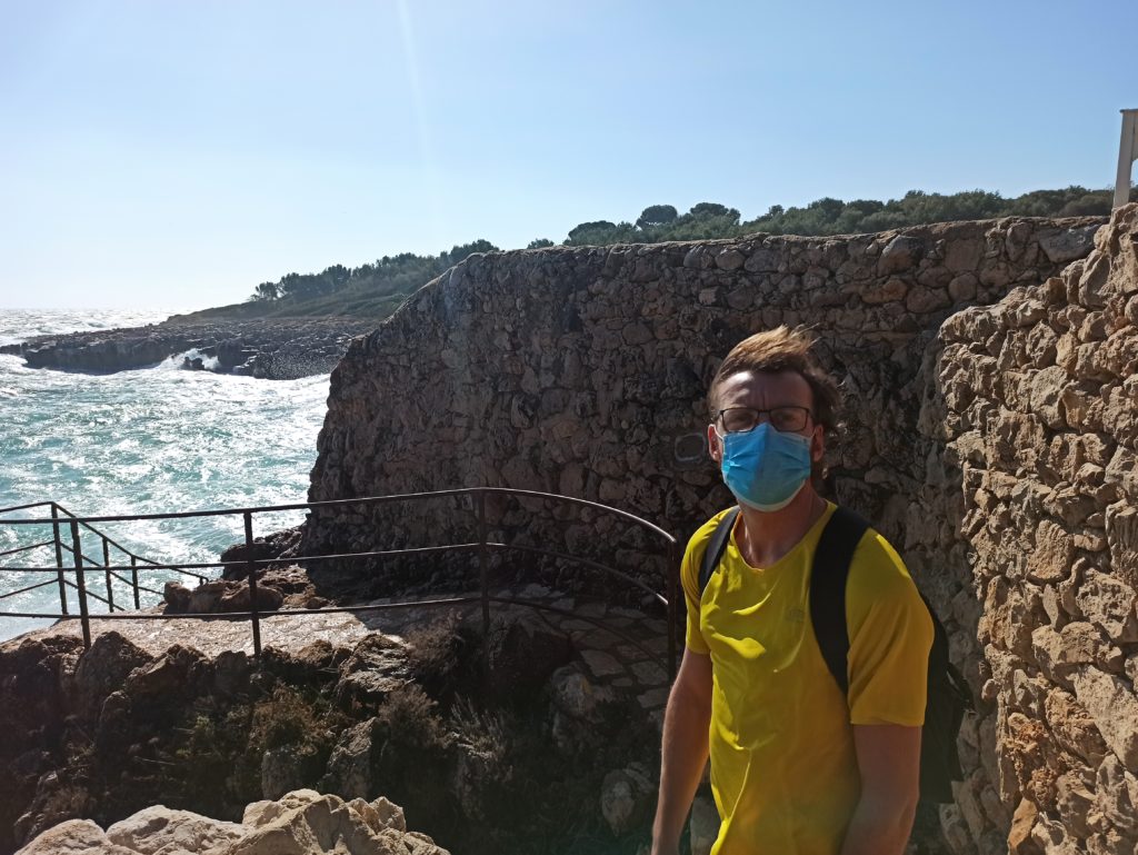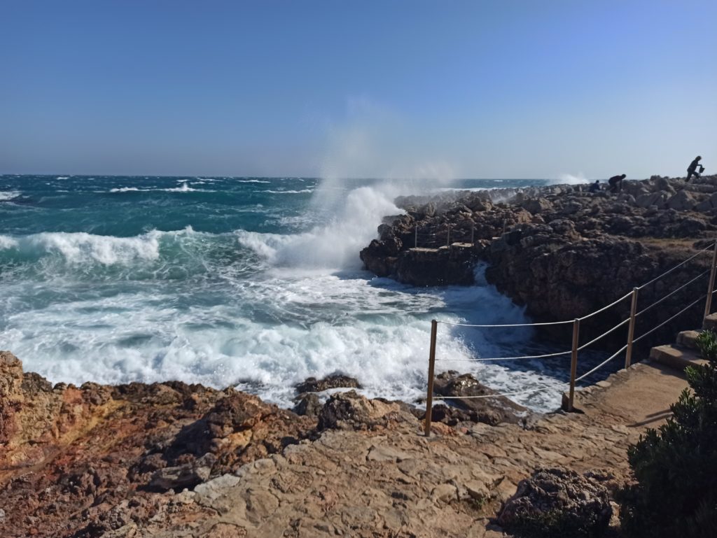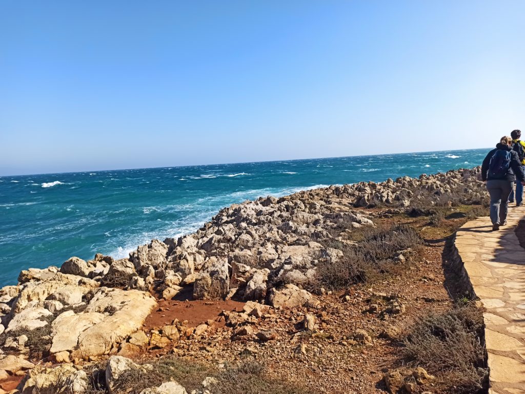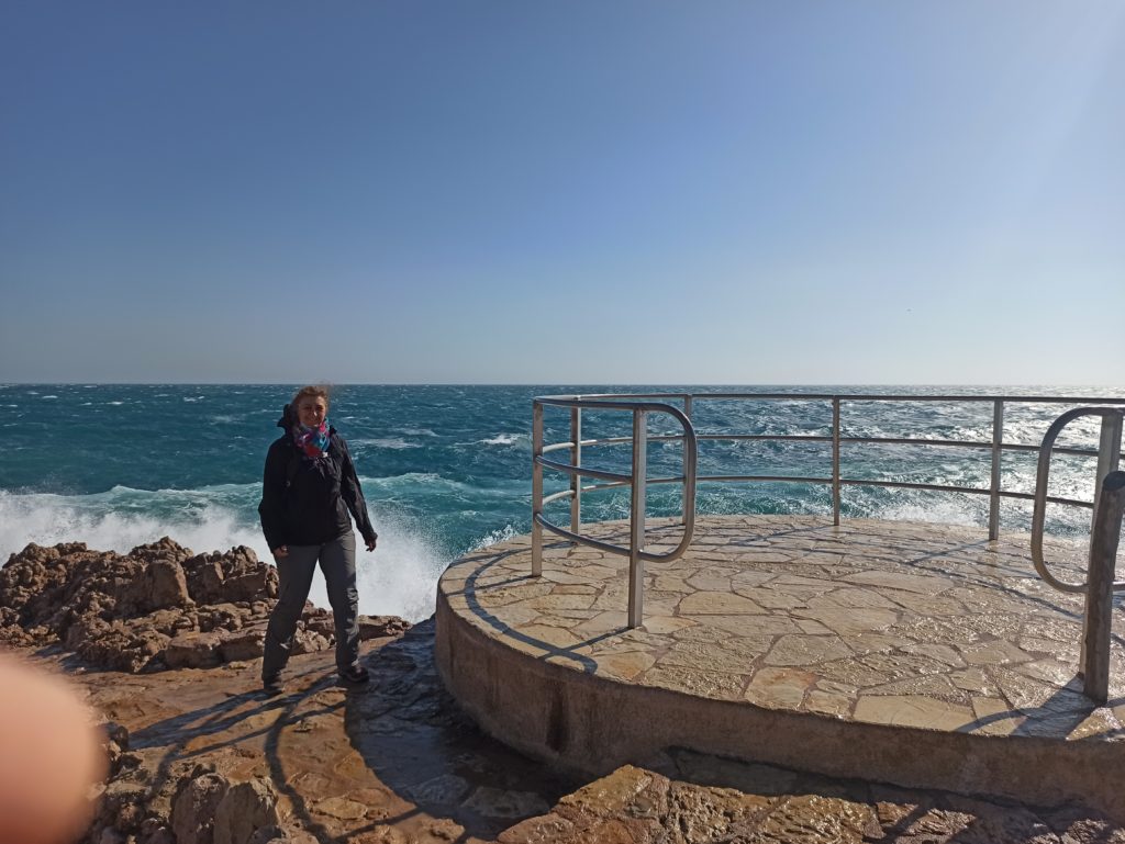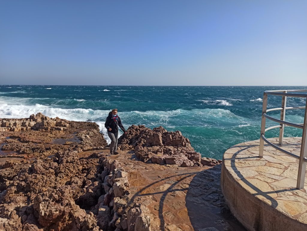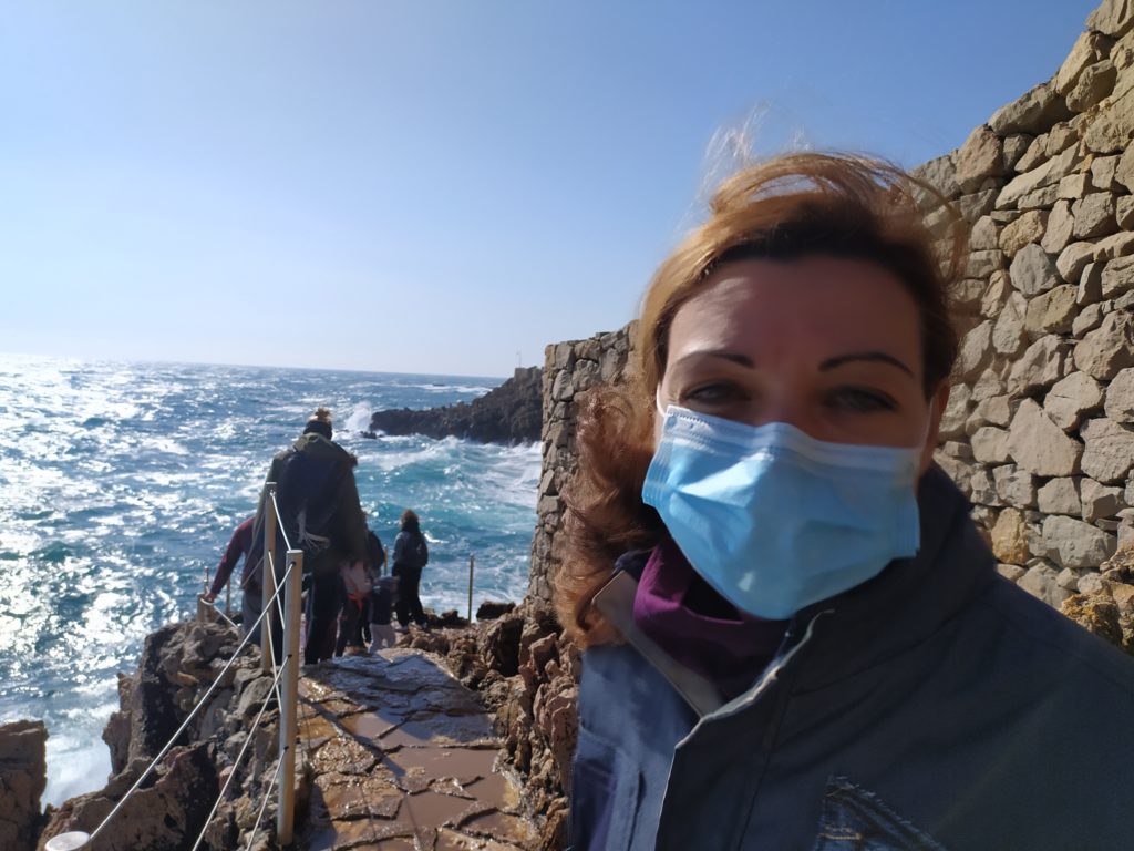 Gloups, enooorme vent aujourd’hui, je vosi au loin les vagues qui passent par dessus le sentier, je comprends mieux pourquoi les gens font demi tour… on verra bien