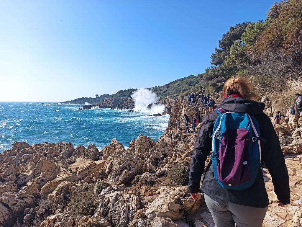 Lorsqu’on évoque le cap d’Antibes, on pense aussitôt aux villas de prestige et aux résidences pour milliardaires noyées dans l’oasis verdoyante de la presqu’île, complantée de hauts pins d’Alep, d’oliviers séculaires et d’essences exotiques. Aux confins de ces lieux enchanteurs, les falaises de calcaire blanc et les criques profondes de la frange littorale dessinent un paysage farouche dont la sauvagerie surprend le visiteur : serpentant au plus près des flots, le sentier des douaniers s’y fraye un difficile passage à travers les murs d’enceinte qui protègent les vastes parcs privés. Étroitesse du cheminement, revêtement inégal, et, par temps de mistral, coups de mer subits et redoutables caractérisent un parcours qui, malgré une intense fréquentation touristique, présente un profil assez sportif. La visite de la villa Eilenroc et de ses jardins idylliquement aménagés clôture ce long périple en bord de mer avant le retour facile vers la Garoupe par les petites routes de l’intérieur du cap d’Antibes