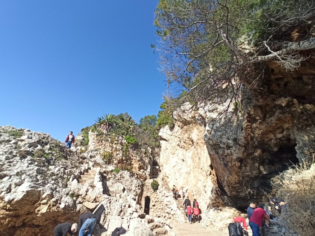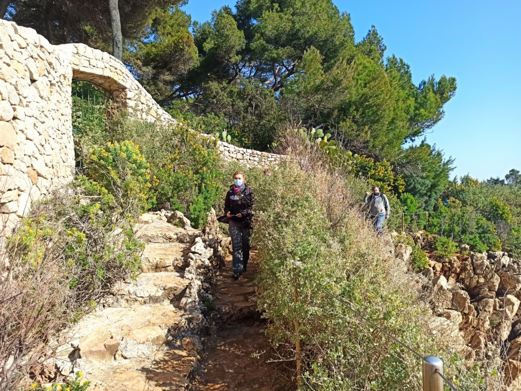 Le chemin fait bientôt place à un sentier pavé (b.55) qui rejoint le cap Gros : Le sentier ou chemin de Tire-Poil est un itinéraire de randonnée pédestre qui longe le littoral du cap d’Antibes, dans les Alpes-Maritimes. Il relie la plage de la Garoupe à l’anse de l’Argent Faux, sur 3,2 kilomètres.