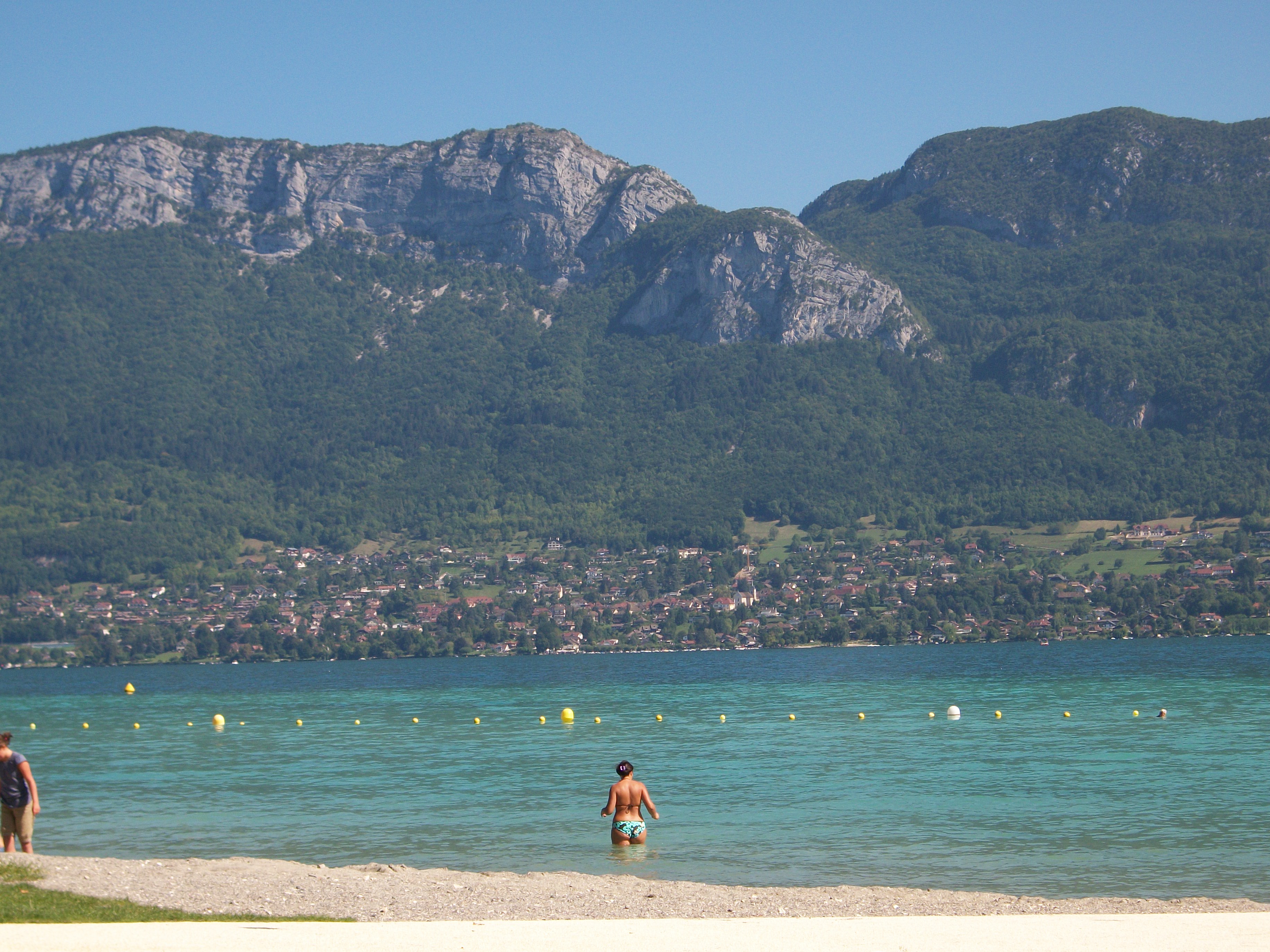 Midi approche, on irait bien à la plage, celle d’Annecy Plage des Marquisats mais beaucoup de monde en perspective. On décide de rouler un peu plus loin, espérant trouver un coin plus tranquille : Sévrier accès gratuit hors saison.