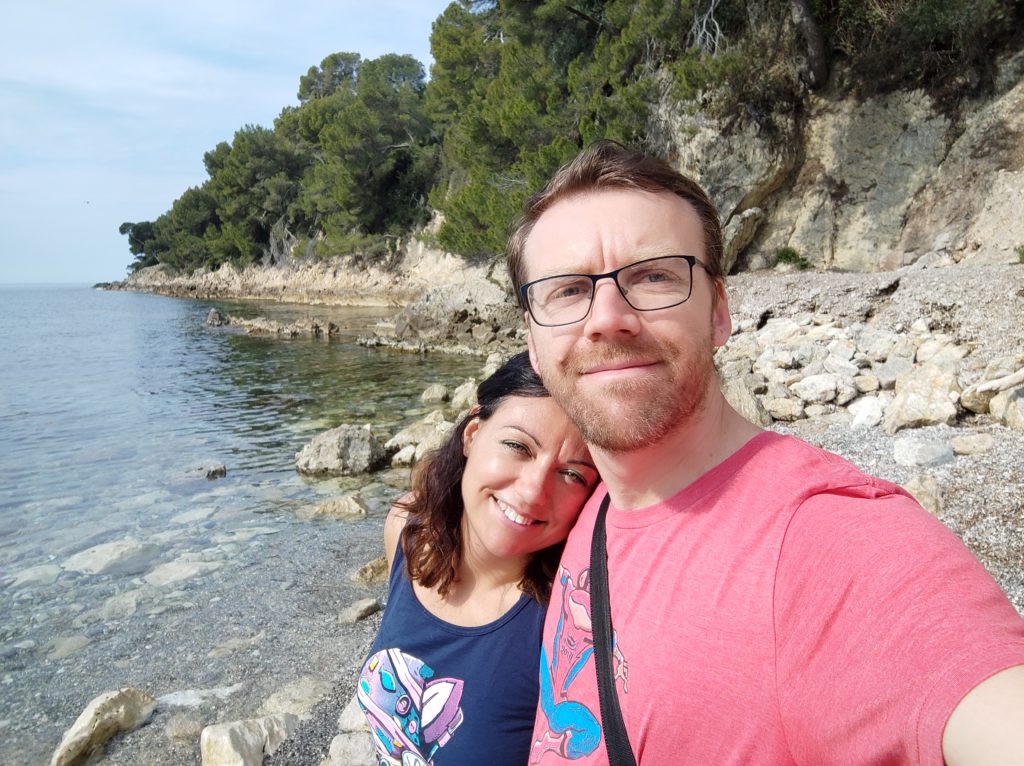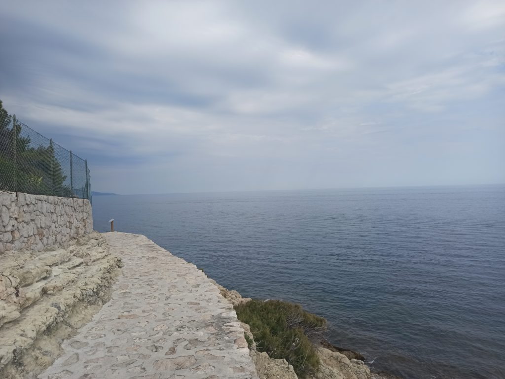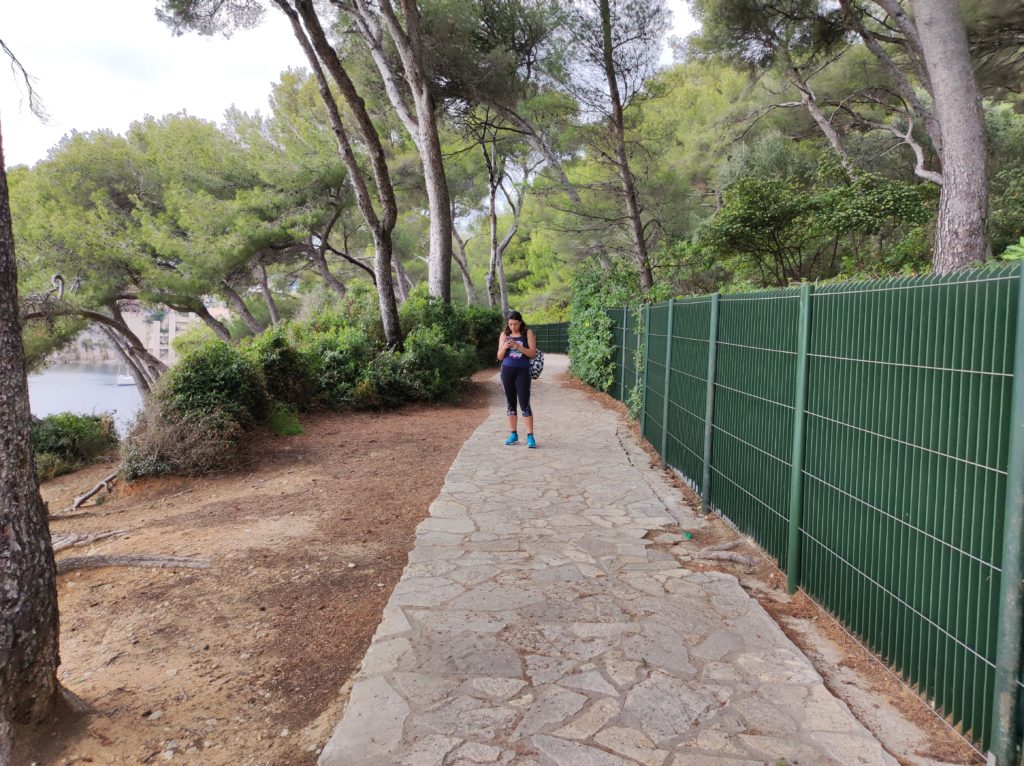 On parvient ainsi au-dessus de la plage des Fossettes à un carrefour d’où démarre à droite un large chemin dallé à travers la pinède. Ne pas prendre ce dernier, mais continuer 100 m sur la route avant de descendre à la plage de la Paloma par un escalier.
