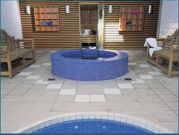 On a aussi été des les différents pavillons, pour le sauna, le hamam, salle de repos… :