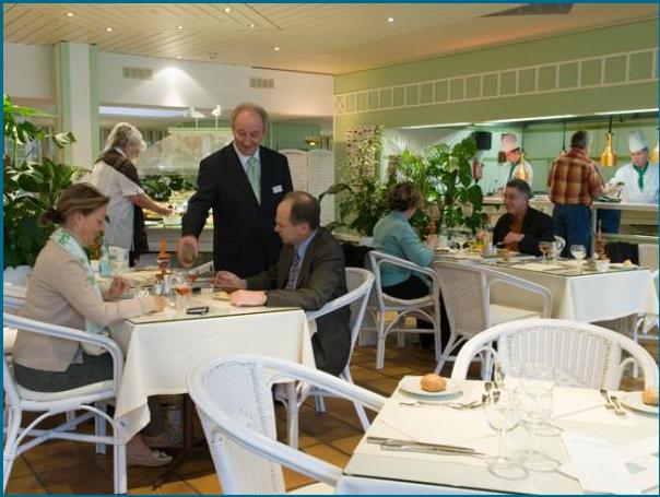 Le choix entre soit le buffet des entrées soit des plats chauds, avec le buffet des desserts et une boisson.