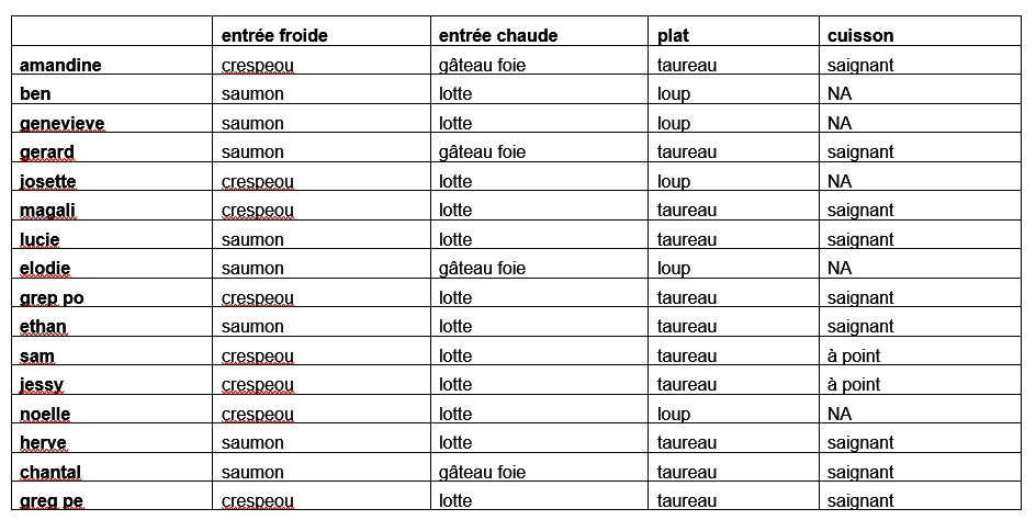 Rappel du Menu de chacun