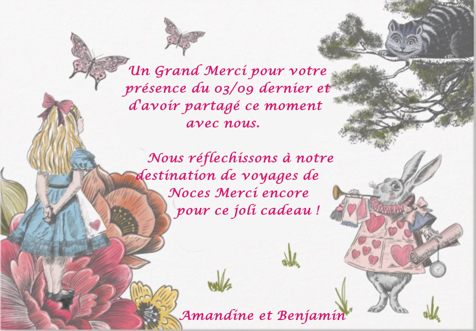 Thème Rose Fuchsia et Blanc sur des notes d’Alice au Pays des Merveilles